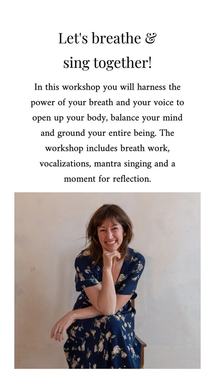 Let’s breathe and sing to rebalance and ground ourselves into the new year. In this 75 minute workshop you will harness the power of your breath and your voice to open up your body, balance your mind and ground your entire being. This workshop includes breath work, vocalizations, mantra singing and a moment for reflection.