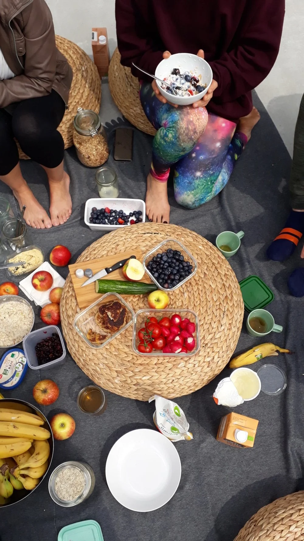 After class we will sit together and enjoy a delicious brunch on the terrace. The Studio will provide waffles, yogurt, fresh fruits and coffee, together with a stunning view and a spirit of community. Cups and cutlery will be provided as well. You add your favourite: Please bring something for breakfast to share with others.